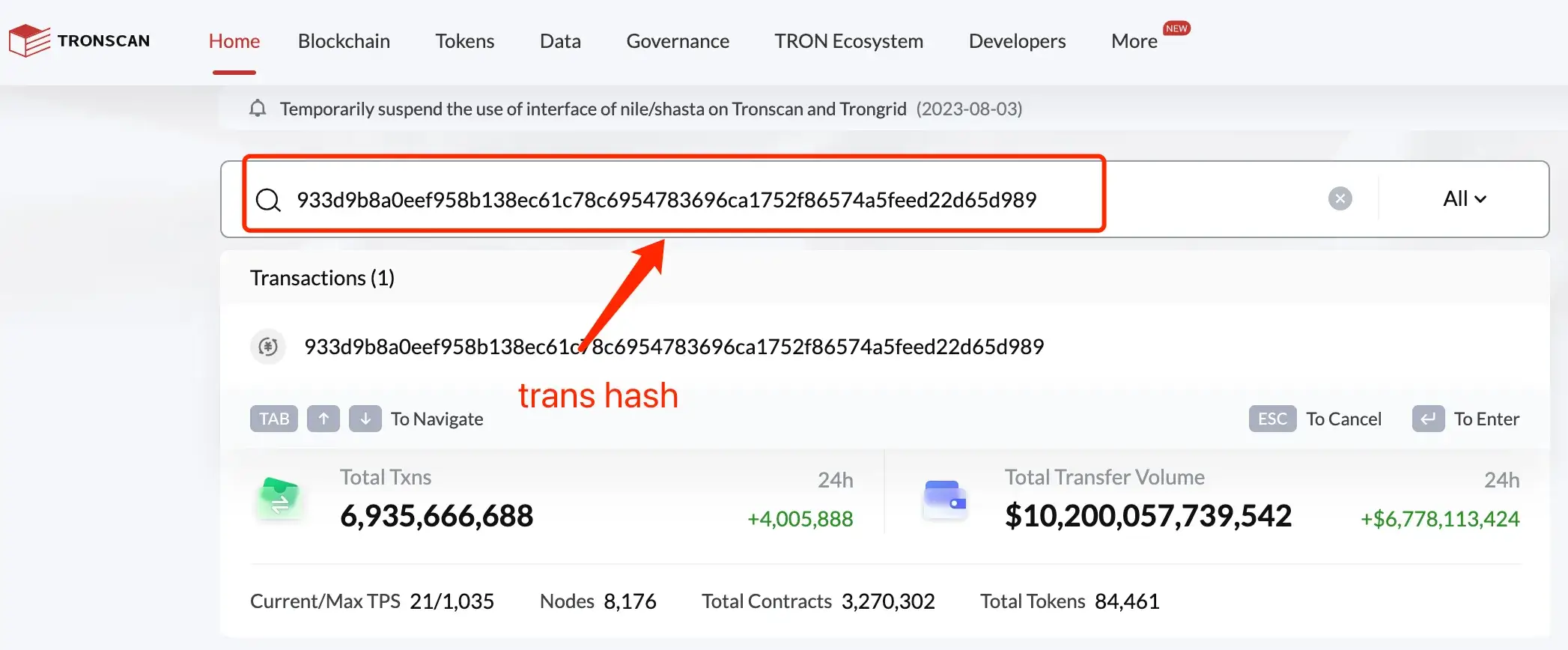 这个可能是大家最常用的,不过在波场区块链上查询USDT交易同样便捷。使用Tronscan,您可以执行以下操作: