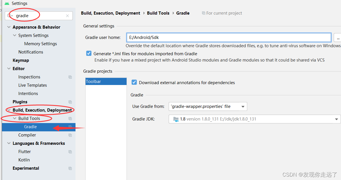 方法1:修改项目的gradle构建jdk(建议在使用别人的单个项目时使用)